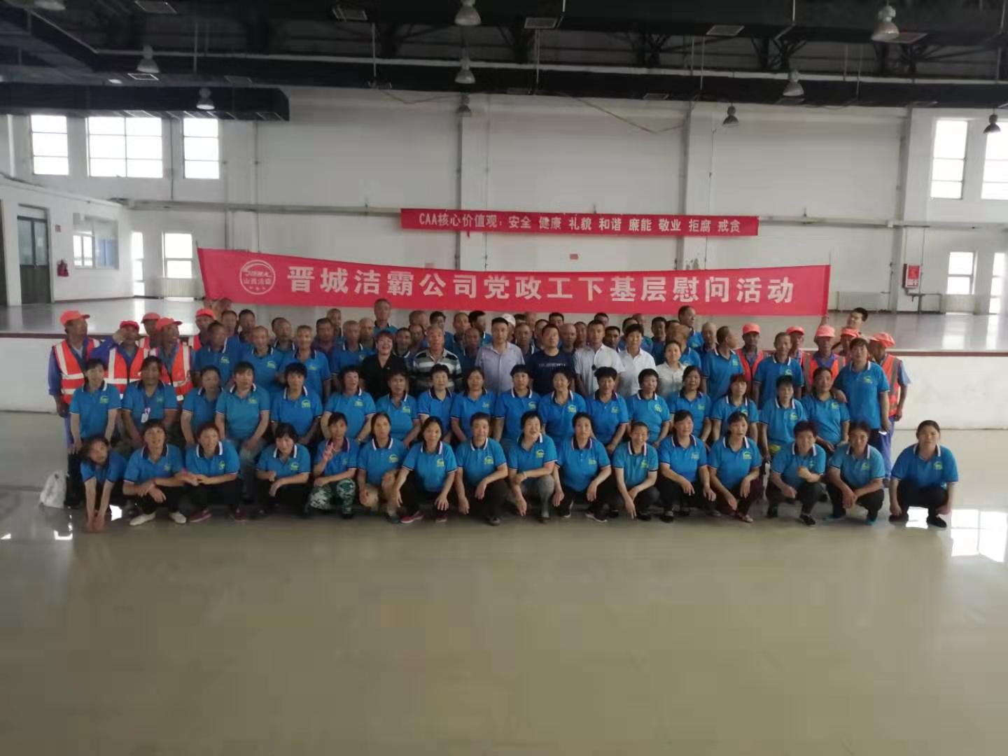 在富士康餐廳二樓,利用工作人員切西瓜的間隙,公司總經(jīng)理程晉軍作了簡(jiǎn)短的講話。他說(shuō),前一段時(shí)間,公司召開(kāi)了“安康杯”勞動(dòng)競(jìng)賽動(dòng)員大會(huì),大家要提高安全意識(shí),始終把安全工作放在心上。他囑托大家在夏季工作中一定要注意防暑,感謝大家在酷暑下依舊兢兢業(yè)業(yè)奮斗在各自的工作崗位上。工會(huì)主席崔偉也作了簡(jiǎn)要發(fā)言,他說(shuō),今年是潔霸公司成立二十周年,希望大家在工作中繼續(xù)發(fā)揚(yáng)潔霸精神,積極樹(shù)立潔霸形象,為公司爭(zhēng)光。